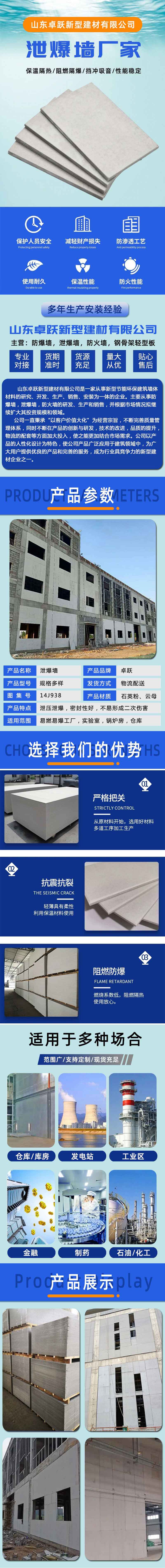 菏泽工业泄爆墙施工定制 化工医药抗爆墙安装 耐热耐高温